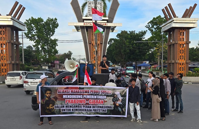 Koordinator lapangan, Fadrian mengatakan, aksi ini bentuk dukungan mereka terhadap Pemerintahan Prabowo Gibran dalam mengambil Peran internasional untuk Kemerdekaan Palestina.