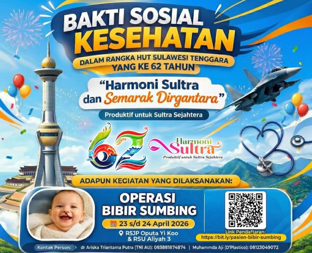 KENDARI – Dalam rangka memperingati Hari Ulang Tahun (HUT) Provinsi Sulawesi Tenggara yang ke-62, pemerintah daerah bersama berbagai instansi terkait menyelenggarakan rangkaian kegiatan Bakti Sosial Kesehatan.