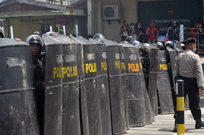 Situasi sempat mereda setelah aparat menembakkan gas air mata dan mengerahkan water cannon untuk membubarkan massa. Langkah tersebut membuka ruang bagi tim terkait untuk masuk ke lokasi dan melanjutkan proses pencocokan objek yang akan dieksekusi.