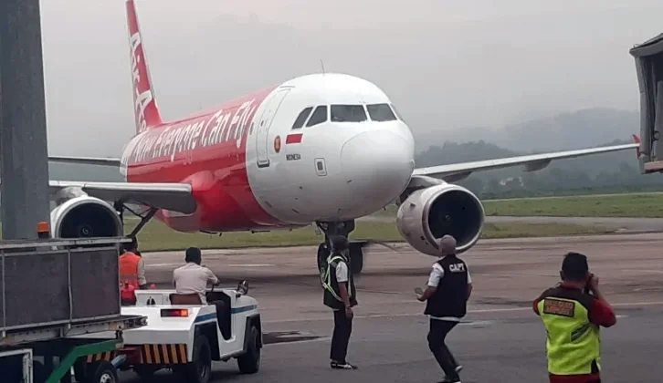 Maskapai Indonesia AirAsia melakukan Penerbangan di Bandara Haluoleo Kendari, Sabtu, 7 Maret 2026