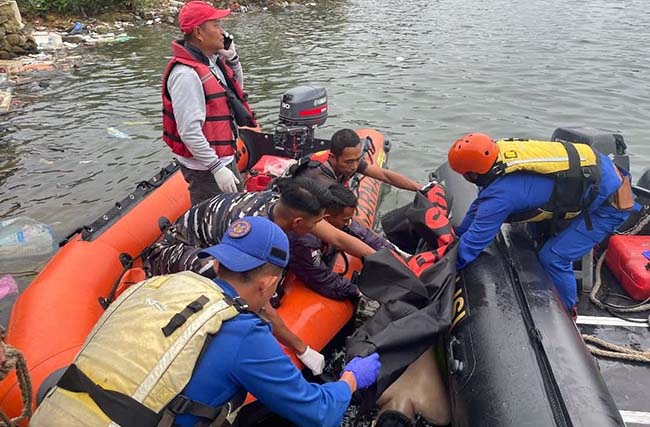 KENDARI – Tim SAR Gabungan mengevakuasi jenazah pria yang melompat ke laut dari Jembatan Teluk Kendari, Kota Kendari, Provinsi Sulawesi Tenggara (Sultra).