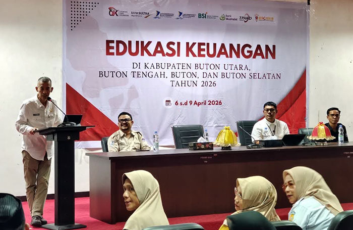 BUTON, Pelitasultra.com – Otoritas Jasa Keuangan (OJK) Perwakilan Sulawesi Tenggara menggelar kegiatan edukasi keuangan bagi masyarakat di Aula Kantor Bupati Buton, Rabu (8/4/2026).