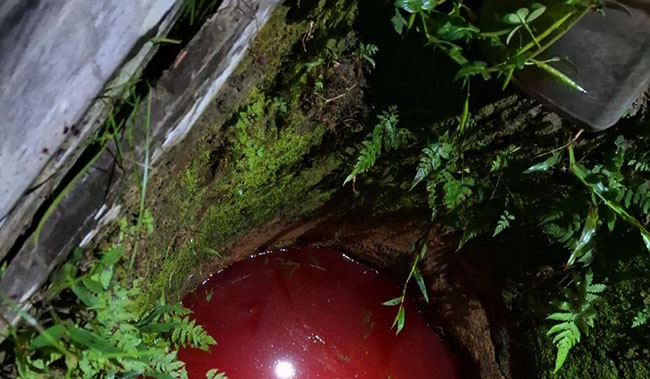 Warga kemudian melaporkan peristiwa tersebut ke Polsek terdekat. Saat tiba di lokasi, sumur di kebun telah berubah warna menjadi merah.
