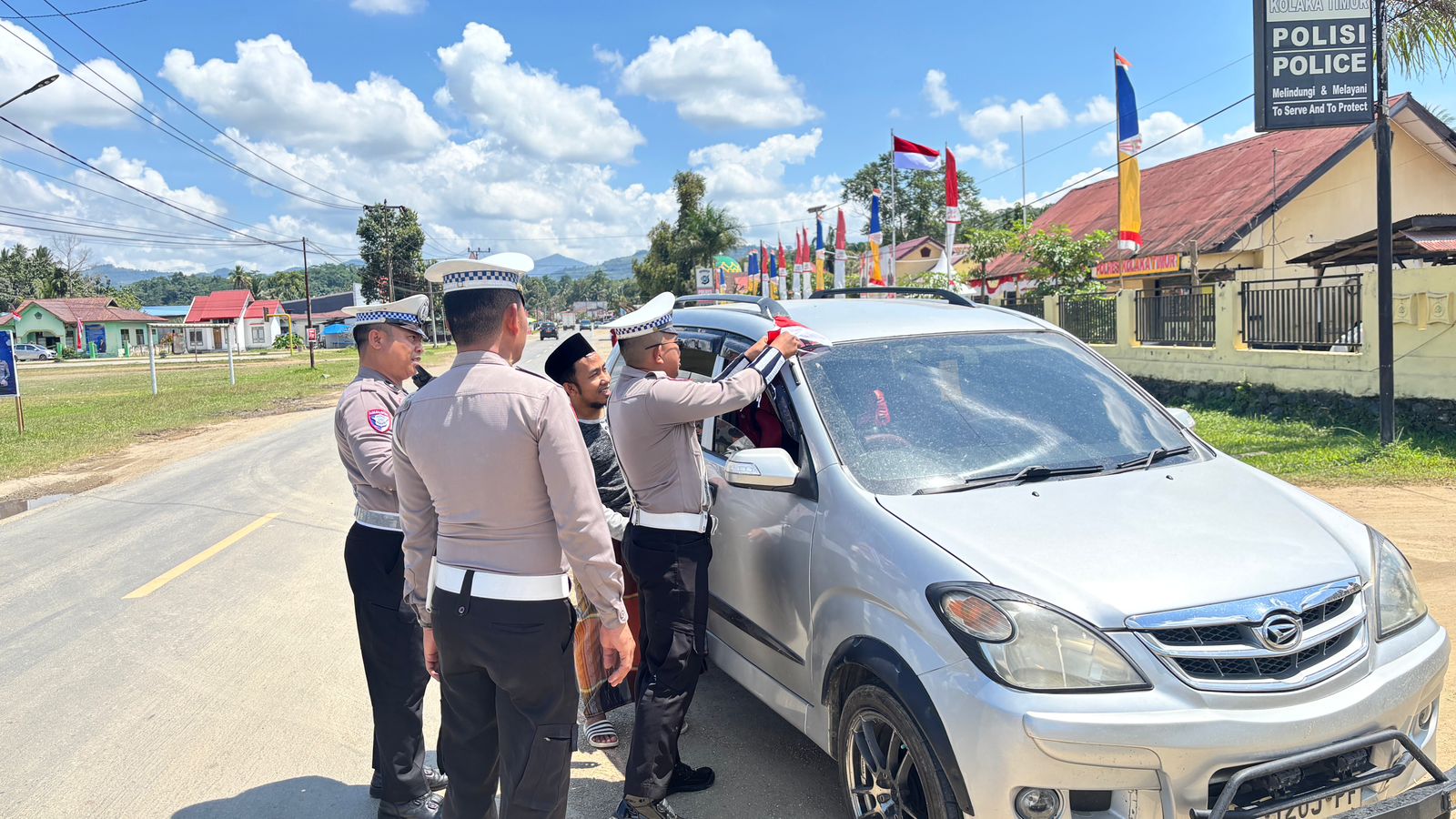Selain pembaguan bendera gratis, petugas Lalu lintas juga memberikan imbauan ke warga untuk tertib berlalu lintas, dan mengutamakan keselamatan saat berkendara.