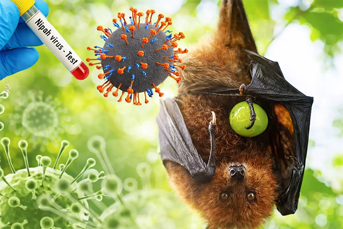 Ketua Tim Karantina Hewan Badan Karantina Sultra, drh Niclah Rifqiyah M.Sc, kepada RRI menjelaskan  virus Nipah disebabkan hewan  kelelawar dan termasuk penyakit menular zoonosis yang dapat berpindah dari hewan ke manusia. Virus dapat menular ke manusia terutama melalui perantara babi, Kuda, Anjing  yang terinfeksi, atau konsumsi makanan/minuman (seperti nira) yang tercemar air liur/urin kelelawar.